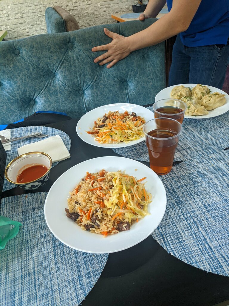 Кафе хорошее, вкусный плов, чай, лепёшки из тандыра, самса, вкусная выпешка, место отличное!