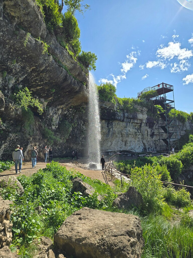 Красивый двухярусный водопад. Очень порадовалась, что природную достопримечательность не испортили постройками, аттракционами. Просто несколько ограждений на краю смотровой площадки.