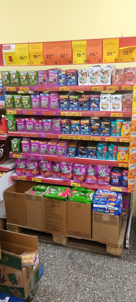 Грязь ,сплошная антисанитария, где работа СЭС, собаки кошки прямо в зале с продуктами ,бывает спят на витринах. Один кассир, попадается просрочка со стертыми датами . Добавления, через год. В очередной раз убеждаюсь, что за кассиром нужно следить и проверять- продали две рыбки с разным весом но одной ценой- как с весом 600гр. и ценой 300р. можно выкатить чек на 470руб.? После обращения к администратору Яне вернули 300р.