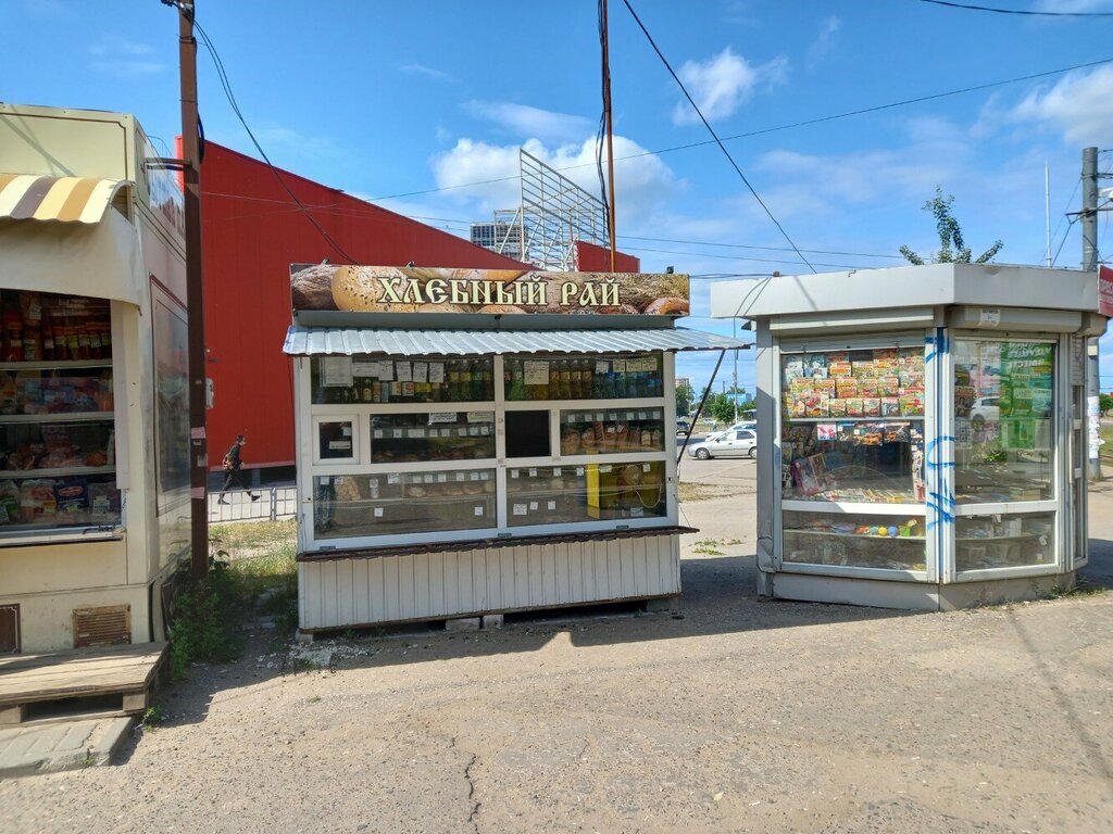 Хлеб не самого лучшего качества и очень много залежалой продукции. При покупке продавец не сообщает о том, что приобретаемое изделие находится на ветрине уже не первый день, понимаешь это уже дома. Не лучшим решением было поставить на этом месте данный киоск, так как слева и справа расположены пекарни, а позади целый рынок, в котором так же предостаточно хлебобулочных изделий.