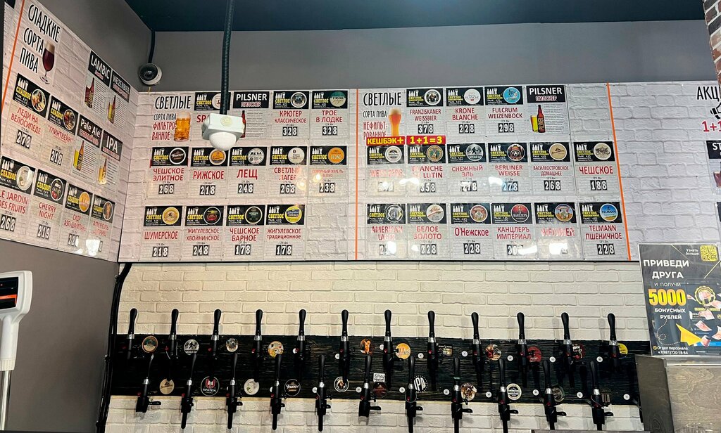 Большой выбор пива. Моему мужу очень нравится вкус и качество пива. Так же там еще большой холодильник с бутылочным пивом. Много снеков, рыбы на любой вкус. В общем, всегда можно найти всё для посиделок с друзьями или с близкими. Рекомендуем.