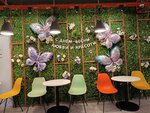 Очень вкусное и красивое кафе, по типу столовой. Мы ели сегодня блины с макаронами и котлетой. И ещё клубничный морс с салатом, и конечно же капучино. В туалете когда заходишь можно услышать звуки птиц, в туалете вообще так красиво, что я хотел там остаться. Вообще-то очень тут вкусно. РЕКОМЕНДУЮ!