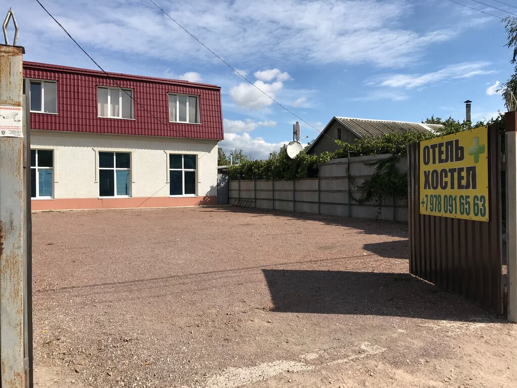 В общем и целом неплохой хостел. Для своей ценовой категории. Есть горячая, холодная вода. Душ, туалет, общая кухня, обеденная зона. Внутренняя парковка для личного транспорта. До остановки гор. транспорта время ходьбы - 1 минута. Но есть над чем поработать. Например: поставить несколько электрочайников , а не один на 10 номеров. Ещё вопросы касательно посуды - с собой нужна ложка, тарелка и кружка, при заселении. Это не обязательное конечно условие, но ходить искать по номерам, кто забрал с общей кухни посуду в номер - такое себе... Минус: рядом за забором, центральная улица села Доброе. Трасса Симферополь-Доброе-Алушта.