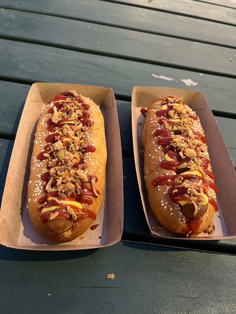 Гостили на этих выходных в Нижнем Новгороде, перед поездом в этом кафе взяли по хот догу и 2 бутылки воды. Не работал кассовый аппарат несколько раз карту прикладывали, уже даже наличку предлагала, но в итоге списали. По чеку 990р, по факту списали 1510р. Не приятно потому что обнаружили это только когда вернулись в Казань. И за что списали не понятно. Чек на руках есть. Номер телефона указанный не работает. Будьте аккуратнее. Очень конечно дорогие хот доги нам вышли....