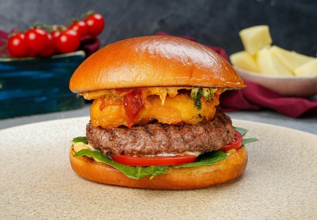 33см томатный соус, пепперони, бекон, говядина, купаты и сыр моцарелла