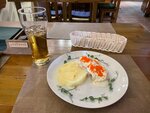 Оцениваю на 1 только потому, что, видимо, это единственное место в посёлке Мурмаши, и у людей нет выбора. Сервис - 0, официант не знает меню - 0. Цены завышены - 0. Так для понимания: в Царской охоте кастрюля мидий 800 рублей, в хуторке - 7 креветок в панировке - 800 рублей🤣 Руководству не смешно? Антураж - 90-00, ну да ладно, пойдёт для ностальгии. Прошлым летом приезжали к друзьям, заходили в это кафе, порции шашлыка были больше и гарнир входил в стоимость. Теперь 5 кусочечков свинины или курицы на резиновом магазинном лаваше - 650 рублей 🤦‍♀️ официант втюхал лишние соусы, сказал - бесплатно. Пиво за 350 рублей, типа, жатецкий гусь🤦‍♀️ Спрашиваешь, сколько градусов в пиве, никто не знает. Принесли не то блюдо, тк официант хрен подойдёт, сами пошли сообщать об этом на "стойку бара", администратоо попросила нам принести к ним обратно) Это испанский стыд 🤦‍♀️ Короче, пришли поржать, видимо)