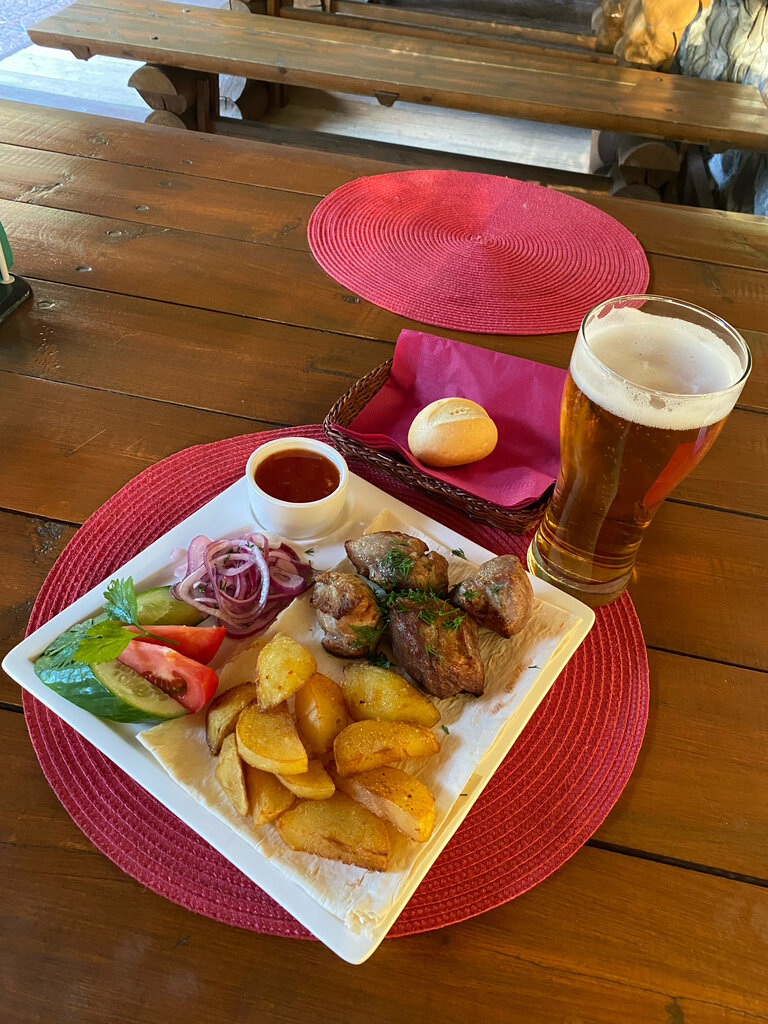 Оцениваю на 1 только потому, что, видимо, это единственное место в посёлке Мурмаши, и у людей нет выбора. Сервис - 0, официант не знает меню - 0. Цены завышены - 0. Так для понимания: в Царской охоте кастрюля мидий 800 рублей, в хуторке - 7 креветок в панировке - 800 рублей🤣 Руководству не смешно? Антураж - 90-00, ну да ладно, пойдёт для ностальгии. Прошлым летом приезжали к друзьям, заходили в это кафе, порции шашлыка были больше и гарнир входил в стоимость. Теперь 5 кусочечков свинины или курицы на резиновом магазинном лаваше - 650 рублей 🤦‍♀️ официант втюхал лишние соусы, сказал - бесплатно. Пиво за 350 рублей, типа, жатецкий гусь🤦‍♀️ Спрашиваешь, сколько градусов в пиве, никто не знает. Принесли не то блюдо, тк официант хрен подойдёт, сами пошли сообщать об этом на "стойку бара", администратоо попросила нам принести к ним обратно) Это испанский стыд 🤦‍♀️ Короче, пришли поржать, видимо)