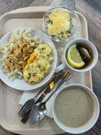 Выбор богатый,глаза разбегаются..но пюре без соли,толченое похоже на воде, рыба с костями, все холодное..но вкусный вишнёвый компотик, за него и 2 звезды..по стоимости ,как в хорошем кафе