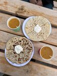 Ааааа КАК, как я не сфоткала. Наверно потому что было очень вкусно 🤤 Я не особо люблю хычины, да и вообще блюда из теста. Но все дни что мы жили в п. Романтиков. На обед мы заходили в это заведение и брали хычины ( с картошкой и сыром). И чай травяной. Очень понравилось что они на сухой сковородке без масла. (Фото прикрепляю не от туда).