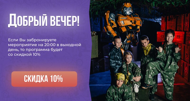 Праздновали День рождения 25.10.25. Всё прошло круто👍🏻 сами игры понравились, инструкторы тоже прикольные ребята. Банкетной комнатой не воспользовались по полной, так как были планы на ресторан после игры, но всё в комнате было чисто и уютно. И несмотря на то, что не заказывала отдельно фотографа, нас всё равно немного пофоткали, снимки супер! 🔥 Добавлю от себя для подготовки к игре: лучше брать сменные не только фуболку, но и шорты, так как игра очень активная и быстро начинает становиться жарко 😅 А так всё круто 👍🏻 в следующий раз протестируем другие игры💪🏻