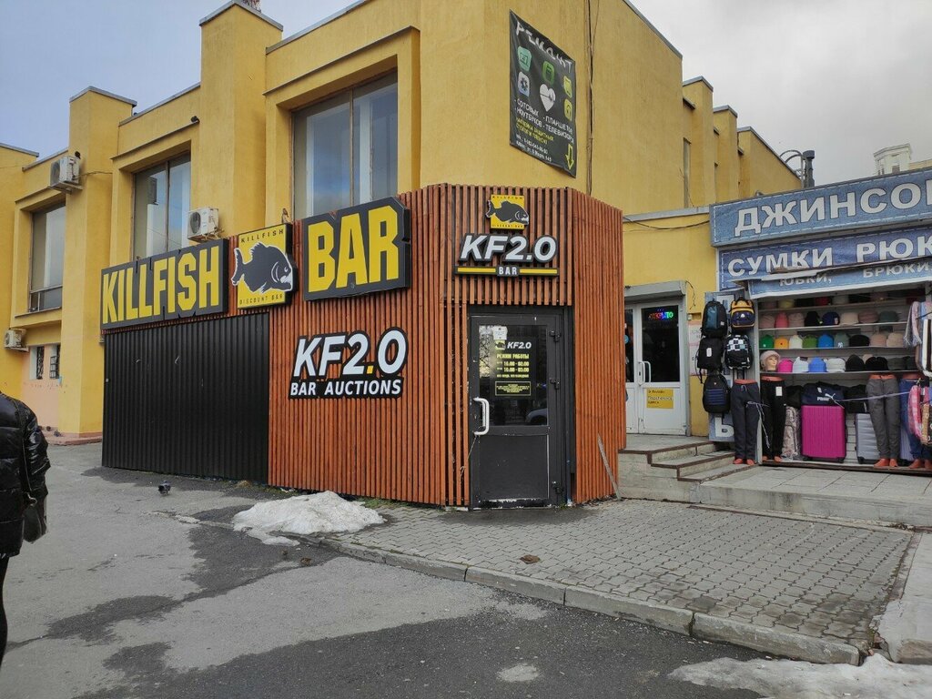 Новенький киллфиш, так еще и 2.0, не уступает своим братьям с вайнера и ленина ни в качестве обслуживания, ни в скорости. по ценам немного выше, но аукционы могут с лихвой скомпенсировать этот недостаток. контингент бывает сомнительным, но спишем это на недостаток любого бара. всем советую бродсы под водку. 2138351/10 для походов с друзьями за дешево поесть и выпить