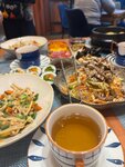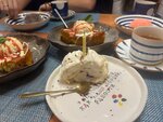 Вчера посетила с подружками данное заведение. Хорошо посидели, отметили др. Всё было просто замечательно. Вкусная еда, которую принесли очень быстро (большие порции и соответствующие цены). Долго выбирали, что покушать, так как хотелось многое попробовать. Приветливый персонал, хорошее обслуживание, дружелюбная атмосфера. Хочется поблагодарить особенно чуткую, милую и очень приятную официантку (рыженькую девушку). Постоянно интересовалась о нашем комфорте. В подарок от заведения вынесла десертик со свечечкой, фирменные палочки и от себя подарила милейший плакатик с поздравлением🥹 было очень приятно, спасибо большое:) Интерерьер тоже понравился, красивенький. Вообщем, рекомендую данное атмосферное кафе, мы остались очень довольны!