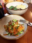 Заказывали Корн-доги рамен и с картошкой фри, кимчи и моти) всё понравилось, особенно Корн-доги (особенно который с фри) и соусы к ним, объелись, ффух..моти необычный десерт, с манго понравился больше. Кимчи почему-то ожидала более острым, мне норм, мужа не зацепило .. P.S. дополнение от 8 ноября 2025: Мы постоянные посетители, очень нравится кухня. Появились новинки, особенно понравилось жареное мороженое ❤️ А ещё тут по субботам и пятницам бывают чумовые концерты 🤘 Рекомендосьон