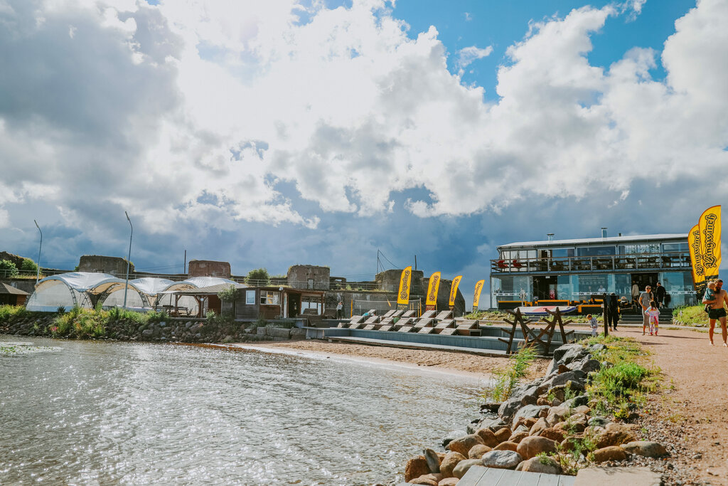 Хороший спорткомплекс, находится на берегу Финского залива, есть веревочный парк, волейбольная и футбольная площадка, тренажер для занятия водными видами спорта. Кафе, беседка, закрытые зоны для барбекю позволяют отдохнуть компанией.