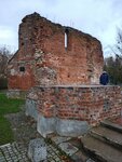Руины Кирхи, а также рядом - фрагменты городской стены и пивоварни, расположены в ухоженном милом скверике на берегу реки Витушки.