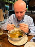 Расположение самое то, обстановка нормальная но едой остались совсем не довольны. Том ям был пресный 100%, и кабачки кусочками добавлены в него для чего так и не поняли🤔А вот десерт и чай были вкусными, за что спасибо. Интерьер кстати прикольный, пластинки ретро👌