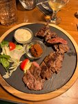 Переоцененное место. На входе сразу метят как в дешёвом турецком отеле - на руку надевают бумажный браслет. Никакого практического смысла в этом нет. Что касается кухни, то между тройкой и четверкой. Оцените на фото подачу бифштекса с картофелем. P. S. Обещают что основные блюда готовятся 20-30 минут, но по факту до часу.
