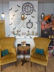Пришли с детьми. Они отлично провели время в игровой комнате, а мы отдохнули за чашечкой кофе и вкусным десертом. Очень уютно, приятный интерьер и красивые декорации к Хэллоуину. Все продумано для детей: санузел, вешалки для одежды, детские стульчики. Спасибо