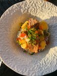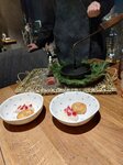 ВАУ ✅ Нам очень понравилось расположение, вид красивый, выходили на террасу полюбоваться, к сожалению, было прохладно, не удалось там посидеть Кухня - огонь!! На любой вкус 🔥 Мы попробовали нарезку из вяленой комнаты, а сморчки - это что-то с чем-то очень вкусно, шаньга с красной икрой, гребешки в сковородке со сливочным маслом и чесноком. Еще заказывали скумбрию с яблочным кремом, приготовлено хорошо, но точно на любителя Вернемся еще, и однозначно рекомендуем 🔥