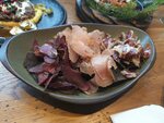 Супер! Вкуснейшие блюда с изумительной подачей, прекрасное обслуживание. Обязательно к посещению! Гребешки с травами и колбаска из краба были просто божественны. Коктейль «Чистый» - реально лучший в моей жизни, очень понравилась подача хреновухи с рассольчиком - придумка супер. Очень стильные наряды у прекрасной половины персонала. Довольно плотно заняты столики, несмотря на дневное время - и это вполне понятно. Цены вполне приятные при таком интересном меню. Я прилетела из Москвы и запланировала к посещению это место, увидев рейтинг. И могу сказать, что в следующий визит точно вернусь!