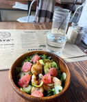 Еда вкусная, салат с креветками лишком острый, как только обратила на это внимание поменяли без вопросов, ибо глаза даже заслезились, лапша с курочкой вкусная, картошка фри вкусная, в целом по еде твердая 4, салат подкачал, подача очень понравилась, я люблю такого вида тарелочки, пиалочки,обслуживание быстрое, бармен Илья старается ,видно что ему не все равно, за персонал твёрдая пятерка с плюсом, атмосфера только из-за бармена зашла, культурный, вежливый, приятно было находиться, спасибо)
