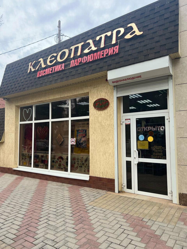 Хороший магазин косметики и доступной для всех парфюмерии. В данном магазине представлены как позиции обычного масмаркета так и оригинальные бренды. Сколько лет работает этот магазин, столько в него и хожу, если что то быстро из косметики и уходовых средств понадобилось. Приличный выбор, хорошие, доступные цены для каждого, ну и качество нормальное и даже хорошее. Спасибо. Так как в нашем городе с такими магазинами проблема(их почти нет)- Клеопатра продолжает занимать хорошие позиции и ни чуть в плохую сторону не меняется. Молодцы 👍