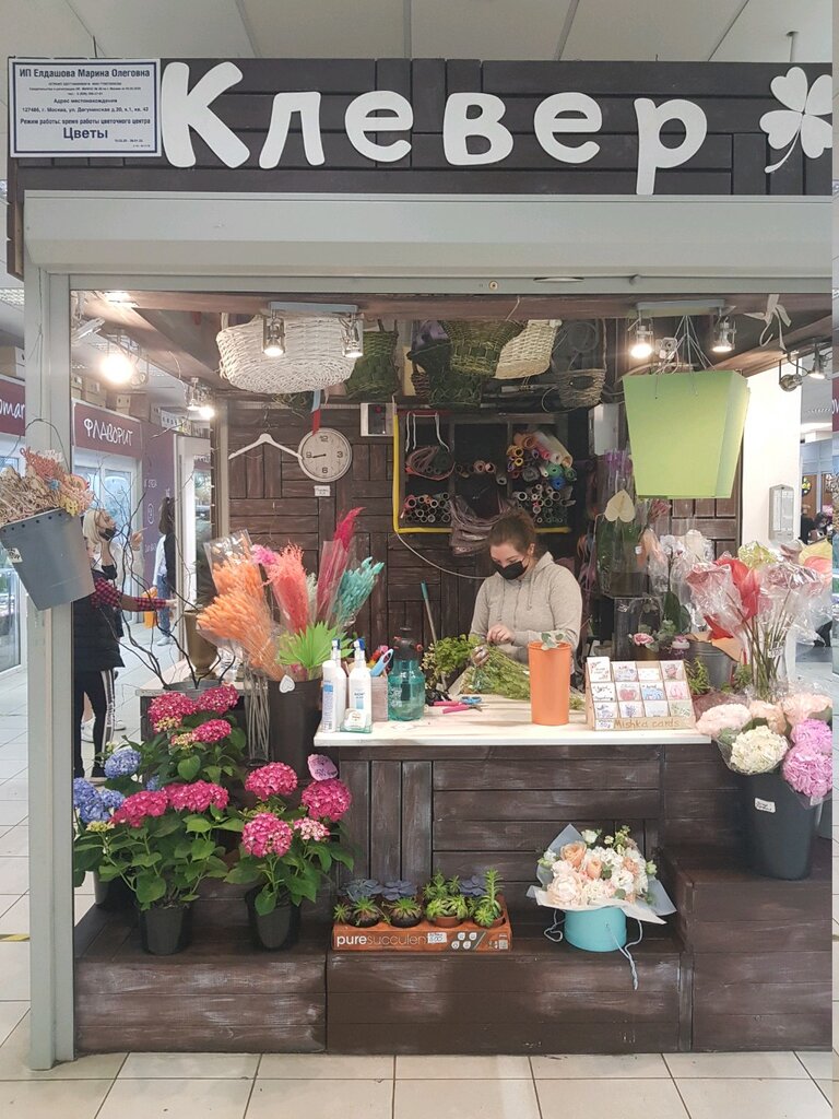 Очень нравится этот цветочный павильон. Цветы всегда свежие. Букеты собраны с особым вкусом, так сказать, с изюминкой, выглядят презентабельно, стильно, современно. Любой букет из "Клевера" - это эксклюзив, который не оставит никого равнодушным!