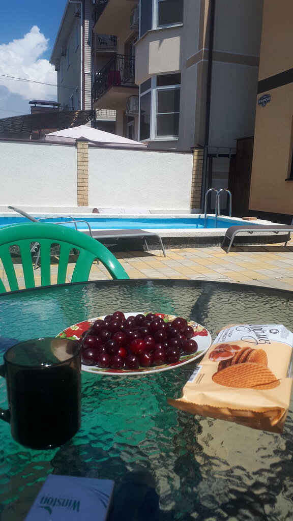 Замечательный гостевой дом! Все чисто, опрятно, свежая мебель, постельное! Каждый год обновления, сразу видно, что с заботой и любовью! Доброжелательная хозяйка Елена не оставит ни один вопрос без внимания! Бассейн чистый, убирают каждое утро, вода теплая, всегда свободные лежаки. Рядом пятёрочка, пункты озона и ВБ, до паралии пешком с коляской совершенно спокойно, также и до пляжа Спасибо ❣️
