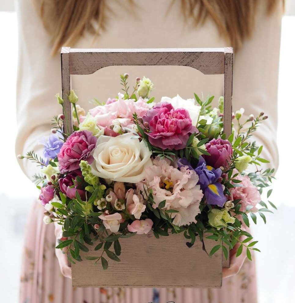 Букет в кашпо - композиция из живых цветов