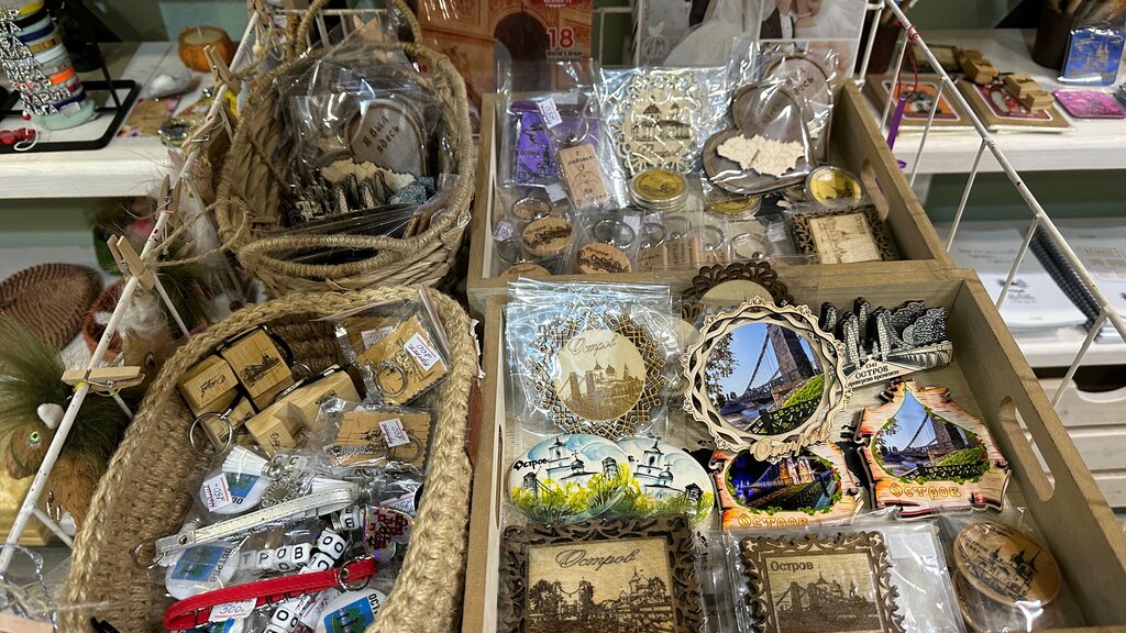 Пожалуй единственный в городе Остров магазин сувениров. Большой выбор магнитов, открыток, керамики и текстиля на любой вкус и кошелек. Есть даже пряники с символикой Острова, но на мой взгляд, они окопались жесткими. Продавец милейшая женщина, пошла мне на встречу и раскрыла набор с рюмками, когда узнала, что рюмки собираю для коллекции. Также рассказала каким город был и что сейчас делается для благоустройства города.