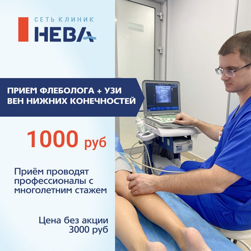 Прием флеболога 1000 руб. + УЗИ вен нижних конечностей - В ПОДАРОК!