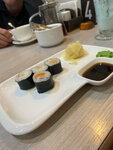 Приветливый,вежливый персонал, что сейчас бывает редко . Так что владельцы-молодцы! Что касается еды: роллы-как везде в России, не японские,но неплохие. Горячие блюда( утиная ножка и судак с овощами на гриле) -вкусно, можно сказать спасибо шефу! Салат мясной -тоже хороший. Общее впечатление-смело можно рекомендовать знакомым.