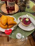 Кушали завтраки и ланч. Вкусно, рекомендую. Интересная тема с чаевыми по QR-коду. Обстановка внутри приятная. В санузле почему-то свет сильно приглушён, для чего так - непонятно. Порожек перед санузлом надо дополнительно выделить - можно споткнуться и навернуться. ;)