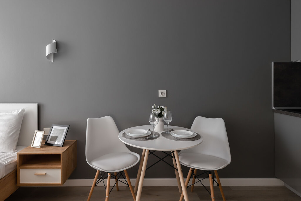 ОЧЕНЬ чистый номер в смешном расположении. Комфортный ЖК, круглосуточный консьерж и не нужно оставлять заявку на курьера, супер удобно. Новый чистый матрас, ни намека на каких-то насекомых в номере [у меня жуткая аллергия на хитин ползучих, мы бы заметили, да и проверяю тщательно]. Были отзывы на нулевую инфраструктуру, для развлекушек может и да, но минимальная для жизни в 2 минутах ходьбы по снегу и слякоти - пятерочка, КБ, вкусвилл, 10 минут до вкусноточки и перекрестка, имеется. Не увлекаемся местами питания, так что кафешек не искали. Если развлекушки - Хорошевкая на МЦК, куда угодно можно. В номере есть соль, сахар, стиральный порошок, мыльно-рыльные принадлежности, средство для мытья посуды, губка и тд. Номер снимаем на двоих, всей посуды и принадлежностей тоже на двоих - бокалы, стаканы, кружки, тарелки [глубокие и обычные], полотенца, зубные щетки и тд. Тут в отзывах жаловались на нерабочий телевизор, у нас тоже выдал лаги, но перезагрузка пульта сработала отлично, все работает. С окна, кстати, не дует. Из минусов: не было одноразовых полотенчиков на кухне, но это моя придирка, цена вопроса - 150 рублей. Реальный минус: никакого коврика в грязной зоне. Зимой ботинками на чистую плитку вообще не очень, пришлось сходить в пятерочку купить полотенца и постелить. На районе действительно много м//грант∆в, с этим ничего не поделать, но агрессивно себя вроде не ведут. Оператор поддержки немного утомленный и не очень идет на контакт, но реагирует быстро и откликается на любые вопросы и просьбы. Заселились легко и успешно, супер милый консьерж, такой прям мальчик в деловом костюме)) В номере действительно очень чисто, клининг прям постарался. Ни пыли, кроме особо трудостопных мест, ни каких-то посторонних запахов, ничего, что указывало бы на то, что тут вообще жили до нас. Единственное - не закрывается дверь в душевую, видимо кто-то застрял и замок спилили. Но нам было норм, стесняться некого. Но вдруг кому принципиально. Доставка едет ±10 минут, до самого далекого магазина тоже ±10 минут. Инфраструктура норм, если вам чисто комфортно пожить. У нас, видимо, тихие соседи, потому что жаловаться на шумоизоляцию пока особо не приходится. Но акустика в подъезде просто вау, хоть Аве-Мария пой. А так все отлично. Будьте готовы перезагрузить пульт для телека, запомнить код для двери [ключ вам не дадут и это правильно] и какое-то время проветривать номер. Ни клопов, ни любых иных насекомых, в номере нет. Есть маленькая морозилочка, стиралка, кондей и датчики дыма. Где можно курить не подскажу - мы не курим, но очередь в лифт бывает вполне себе, а лестница только для эвакуации)) Номер для неторопливых. И не сказать что тесно для двоих, вполне уютно. Но очень смешная система включения света, искать выключатели в нужном месте будете долго))). Но одеяло, к сожалению, только одно, будете драться ночью
