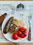 Несмотря на то, что Кочерга заведение не молодое, в нашем городе, приятно порадовало пожалуй всё. От персонала до отличной, вкуснейшей еды. Кушали 4 двое детей 9 и 12 лет и мы с супругой. Меню обширное, каждый выбрал разное. И все, не до конца осилили свои порции. Пища просто вкуснейшая, мясно нежное, колбаски тают во рту, с сырными ингридиентами повора творят просто волшебство. Супруга большой ценитель окрошки и осталась весьма довольна. По ценам, как по мне норм. 3500 за такой кайф всей семьей. Мы люди простые, рабочие, так что попросили завернуть с собой, то что не доели. Кто же такое добро выбросит.