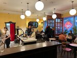 Кофейня просто потрясающая! В помещении очень просторно, но в тоже время и уютно, Бариста очень приятные. Помещение выделенное для уборной всего одно, но его хватает, посколько народу в кафе не много. Я заказал себе большой капучино всего лишь за 165₽ в отличии от других кафе, где такое же капучино стоило бы 250₽ Мало того, что за такую маленькую цену делают столь потрясающий кофе, на подносе дополнительно стоит стакан воды и стакан с салфетками, сахаром, и палочкой для размешивания сахара. Всем советую данное заведение, я остался в хорошем впечатлении и теперь знаю куда буду частенько заходить.