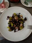 Свекла запеченная, орех кедровый, виноград, брынза, крем бальзамический.