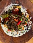Всем привет, ходим часто в места с Узбекской кухней. Пробуем блюдо «Куртоб». Сколько кафе, ресторанов - столько разных исполнений этого явства! Пришли сюда тоже заказали сразу Куртоб. Фото прилагаю. Принесли быстро Подача : красиво, тарелка меня впечатлила! + ; а вот приборы пахли хлоркой и были липкие, на две персоны нам принесли две вилки и одну ложку 😆 улыбнуло, на да ладно Заказали чай, чай вкусный , чайник традиционный, пиалы снова липкие и пахли мылом 😔… на такое себе уже… Вкусно поели , потом еще взяли десерт один на двоих А вот когда пришли домой поняли , что живот вздулся Не думаю что продукты или приготовление виноваты , нет Думаю всему виной грязная посуда ! И точно присоединившееся какая т инфекция 😷 Короче снимаю звезду , а лучше б две за грязную посуду и антисанитарию … Вообщем на вкус и цвет Вкусно но со своей посудой