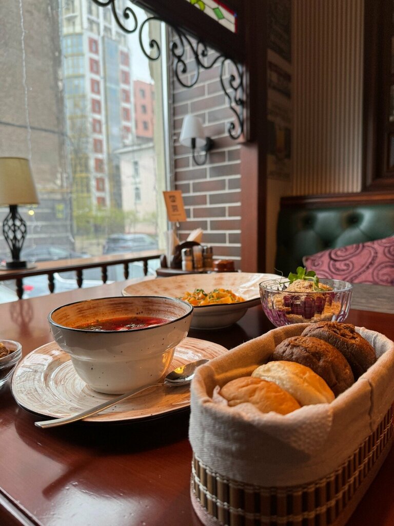 Отличное заведение, вкусная еда, быстрая подача блюд, широкий выбор блюд в меню. Борщ отменный!подача заслуживает похвалы шефу, подали с зеленью,чесноком, хлеб с чесночной пропиткой сверху, сало 3 куска, все как надо) предложили горячительное под борщ,оно тоже идет в комплекте) , единственное хотелось бы сало потоньше нарезку,но это на любителя разумеется. После визита хочется вернуться и пробовать остальные позиции в меню!
