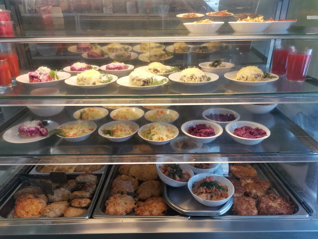 Гадость редкостная. Компот отдаёт огуречным рассолом, макароны просто мерзкие, слипшиеся, у "жар птицы" тоже посторонние привкусы, как раз из-за хранения. Ну а как хранятся салаты и вторые блюда, я просто промолчу - в холодильнике для напитков всё навалено в кучу. Честно, доесть ничего не смогла, аж до тошноты. Не советую. Из плюсов только цена. Была во второй половине дня, может быть в обеденный перерыв лучше, не знаю, но и проверять второй раз не хочется.