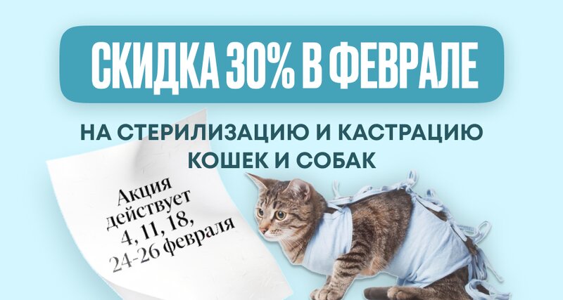 🐾 Скидка 30% в феврале на стерилизацию и кастрацию в ветклинике Колибри в Ставрополе! 📅 Акция действует: 4, 11, 18, 24–26 февраля. Это ...