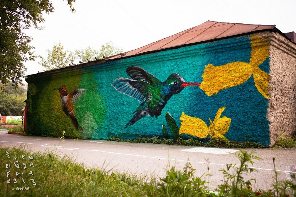Маленькие птички колибри были созданы в рамках проекта «Арт во благо» на территории Дома-интерната совместно с фестивалем уличного искусства STENOGRAFFIA, волонтерским движением «Дорогами добра». Воспитанники помогали создавать яркие рисунки, и многие из них сохранились до сих пор. На территории дома-интерната действует пропускной режим.