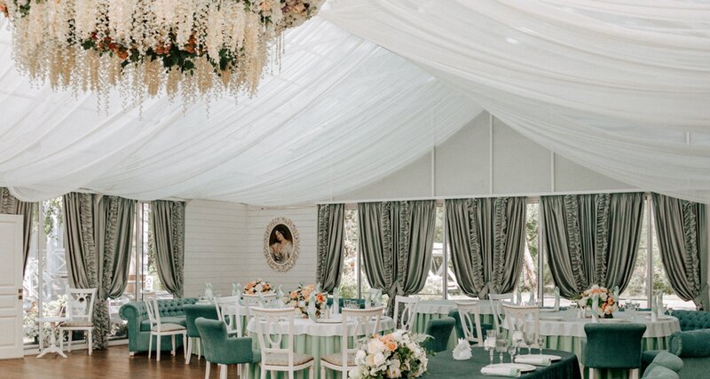 Были на свадьбе август 2025...место шикарное, особняк старинный, очень понравился, везде там побывали))) но мы гуляли на летней веранде, очень круто было, по территории можно по бродить, пофоткаться... Атмосфера будто за городом, уютно, свежий воздух, тишина, зелень вокруг. Еда мне понравилась, но некоторые блюда для меня пересолены были, а а целом все вкусно и персонал вежливый, внимательный.. Все делали вовремя.