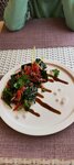 Брал харчо, люля из баранины с гарниром. Ничего не впечатлило, посредственно. Харчо какой-то "жидкий", Я привык что он наваристый густой, насыщенный вкус - тут этого ничего не было. Люля посредственная не хуже не лучше чем в кафе вдоль трассы, аджика так называемая вообще ни о чём - томатный соус какой-то, аджикой это назвать язык не повернется. Точно не рекомендую это заведение по соотношению цена-качество. Пы.сы. жена брала харчо и салат Тбилиси. Салат понравился , харчо сказала худший, что пробовала...