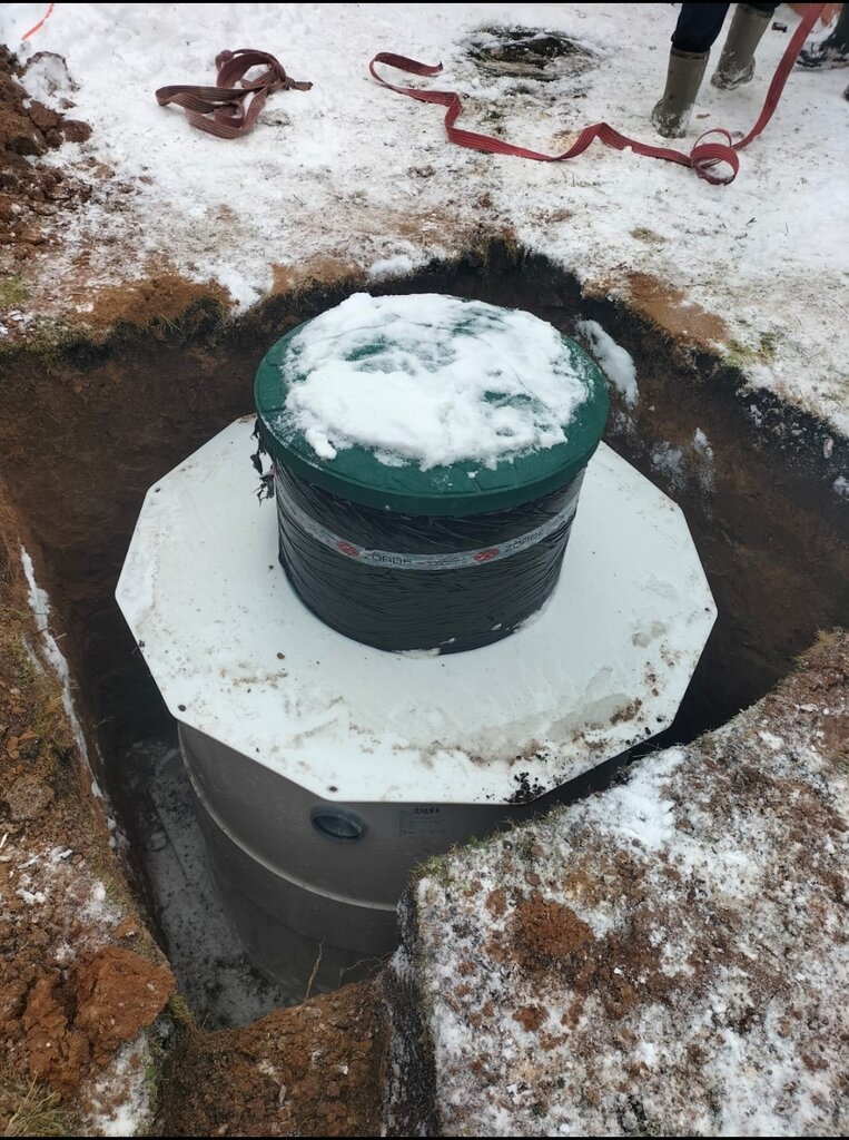 Не удобная для обслуживания конструкция, много сомнительных решений, нет нормальных жиров и волосоуловителей, затрудненный доступ к элементам конструкции, применение китайского переливного насоса, хваленая автоматизация управлением насоса перелива - это вообще чудо (поплавковый насос и розетка с электромеханическим таймером, подающим напряжение каждые 2 часа)). Монтажники - ребята бравые, но не русские, сложно общаться из-за языкового барьера, копают вручную достаточно быстро, но остаётся вопрос по качеству монтажа. По их требованию закуплен гравий 4куба и промытый песок 8кубов, но вот использовано меньше половины. А ведь это деньги, принимая во внимание, что пришлось нанимать большие машины, ща которые и доставка дороже... Также, не понятно, как обезопасен септик от морозного пучения/всплытия? Посмотрим как перезимуем...