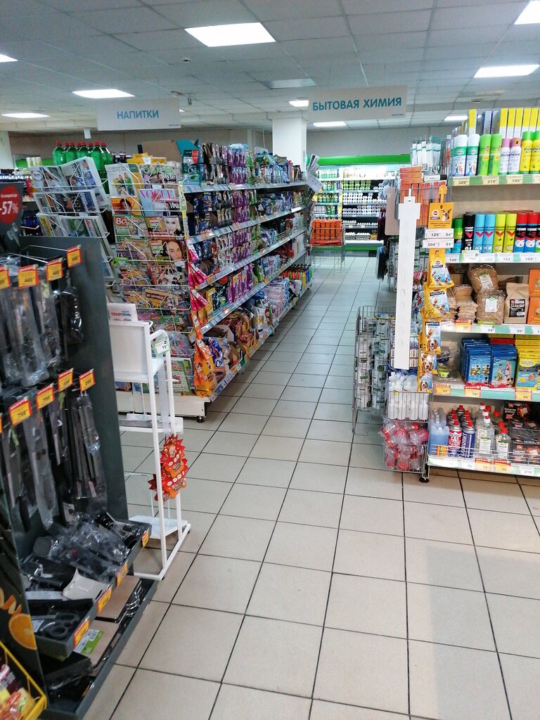 Хороший чистый магазин, просрочки из покупаемых продуктов обнаружено не было)) своя пекарня , мясо и т.п. поэтому приятные цены, ассортимент хороший👍