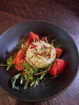 котлета из мраморной говядины, слайс томата, лист салата, маринованный огурец, красный лук, соус коктейльный