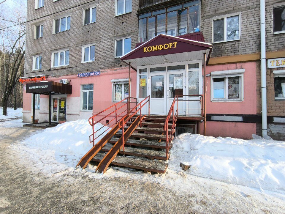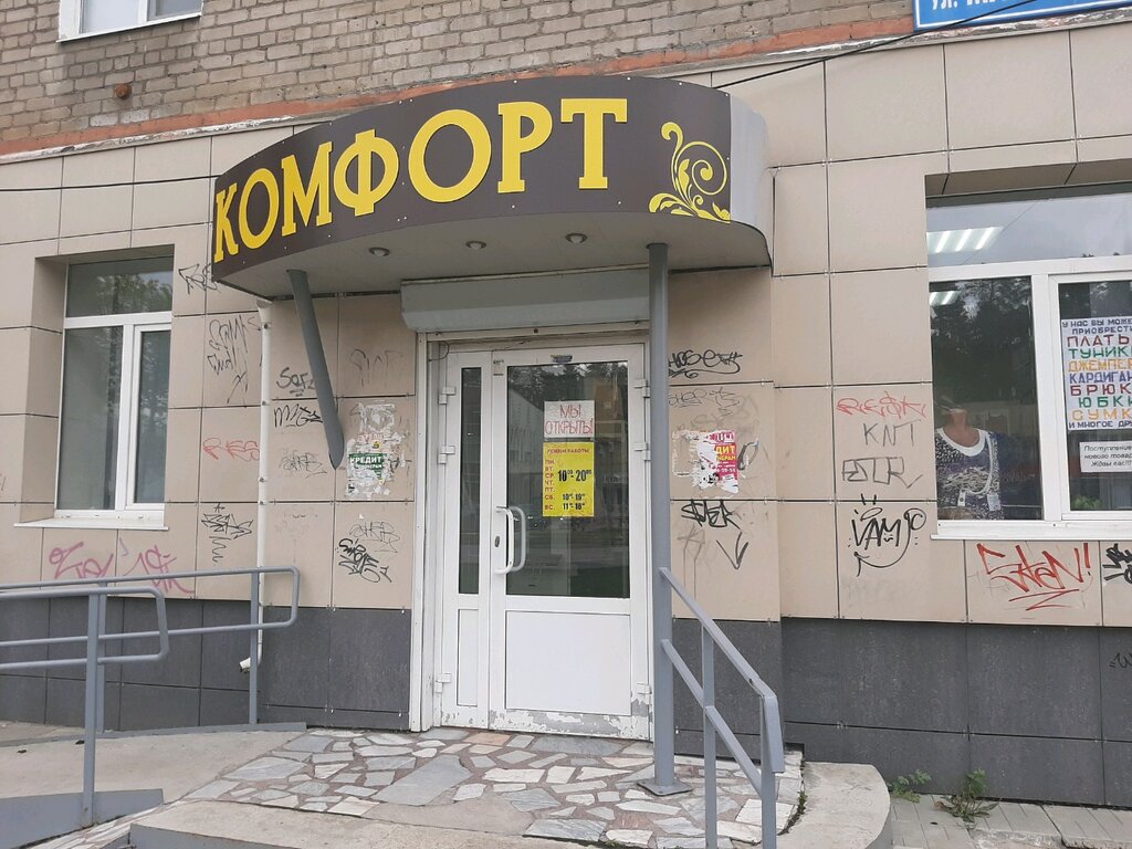 Отличный магазин. Цены низкие. Сегодня одела себя и мужа на 2000 р.: купила брюки, платье, тунику, тельняшку, футболку, пару маек и трусов. Судите сами: майка хб - 75 р. Где еще такие цены? Товар российский, отличного качества. Выбор размеров огромен: до 62 размера, по-моему. Расцветки, фасоны разные: на любую фигуру. Отзывчивые продавцы. Оплата по карте. Удобная планировка, чистые примерочные. В этом магазине продаются не только одежда, но и полотенца, постельное белье, пледы, вообщем, весь текстиль, детские товары. Только вот входы в эти отделы разные со стороны ул. М.Рыбалко, но название у всех одно: "Комфорт". Рекомендую всем! Я в восторге! Хорошо, мама подсказала, она уже 10 лет там все покупает.