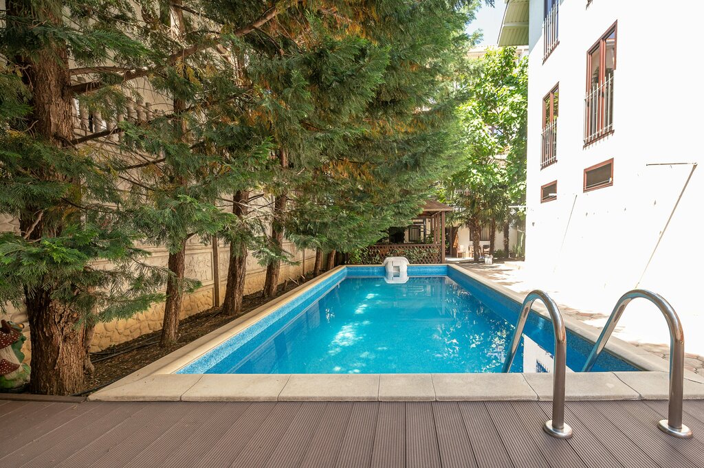 Отдыхаем в этом месте ежегодно начиная с 2012 года всей семьёй, занимаем семейный номер. Все отлично. Нам нравится Алушта и место, где находится отель, и обслуживание и хозяева Александр и Лена. Номера отличные с с/у, кондеи, тв, холодильник, есть прачечная. На территории много зелени, беседка, бассейн, который чистят каждый день и могут погреть воду, кухня общая. В 3-х мин ходьбы небольшой рынок, где можно все купить свежее, что овощи и фрукты, так и мясо и молочку, цены норм, я сравниваю цены с Уфой, т.е. там где живу. Для тех кто без авто, на пляж городской ногами мин 20, на троллейбусе столько же только места для плавания лучше и народу меньше, это я про Профессорский уголок. На пляжах галька, не песок. У кого есть вопросы пишите или звоните, всем отвечу.