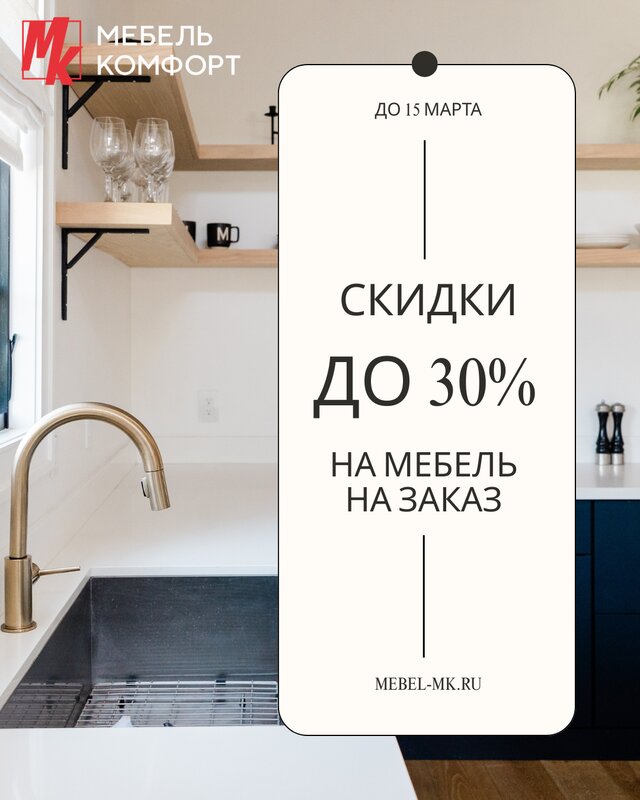 Обновите интерьер к весне вместе с «Мебель Комфорт»! 🌱 С 18 по 28 февраля дарим скидки на всю мебель на заказ: ✔ Заказ до 200 000 руб. → С...